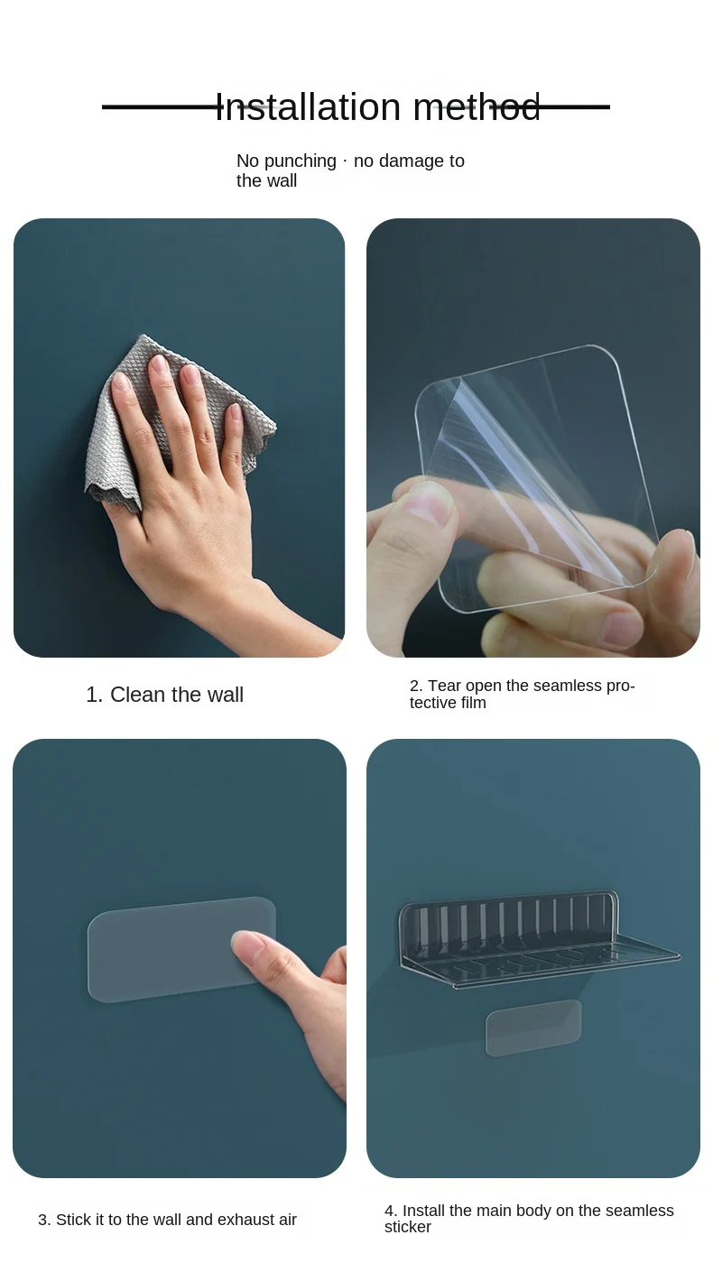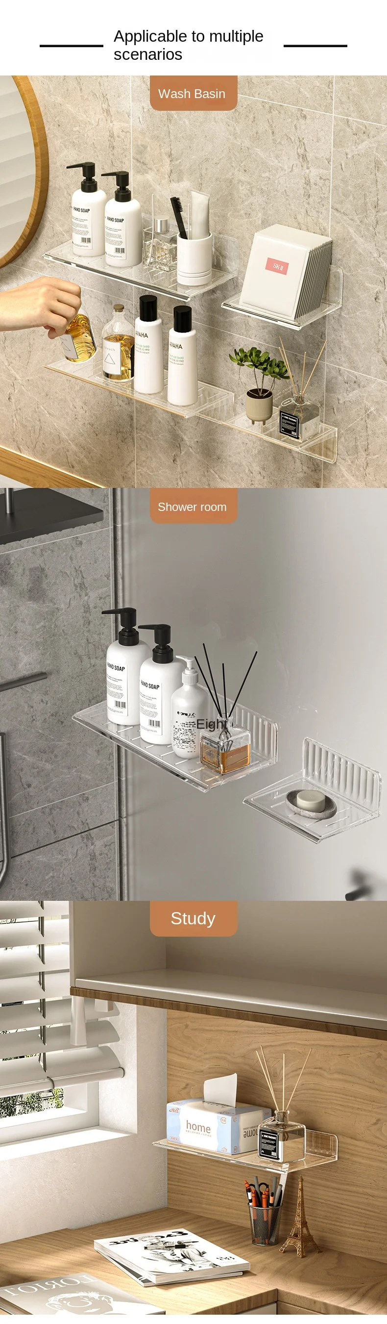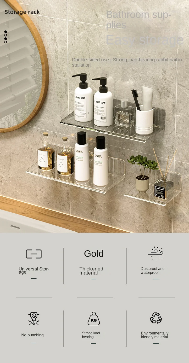 Wall-mounted Storage Rack for Bathroom, Punch-free, Household, Toiletry, Table, Cosmetic, Makeup, Rack, #3478