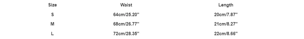 | Size:S | Waist:64cm/25.20'' | Length:20cm/7.87'' |